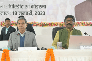 गिरिडीह नगर भवन में वरीय पदाधिकारियों के साथ समीक्षा बैठक में मुख्यमंत्री हेमन्त सोरेन इस मौके पर वरीय पदाधिकारियों के साथ कार्यकर्ता मौजूद थे | इस दौरान पुलिस बल के जवान मौके पर तैनात थे |