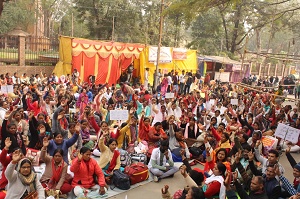 झारखंड के 24 जिलों के अनुबंध पर काम करने वाले फार्मासिस्ट, एक्सरे टेक्नीशियन, एएनएम, जीएनएम, लैब टेक्नीशियन शामिल हुए.