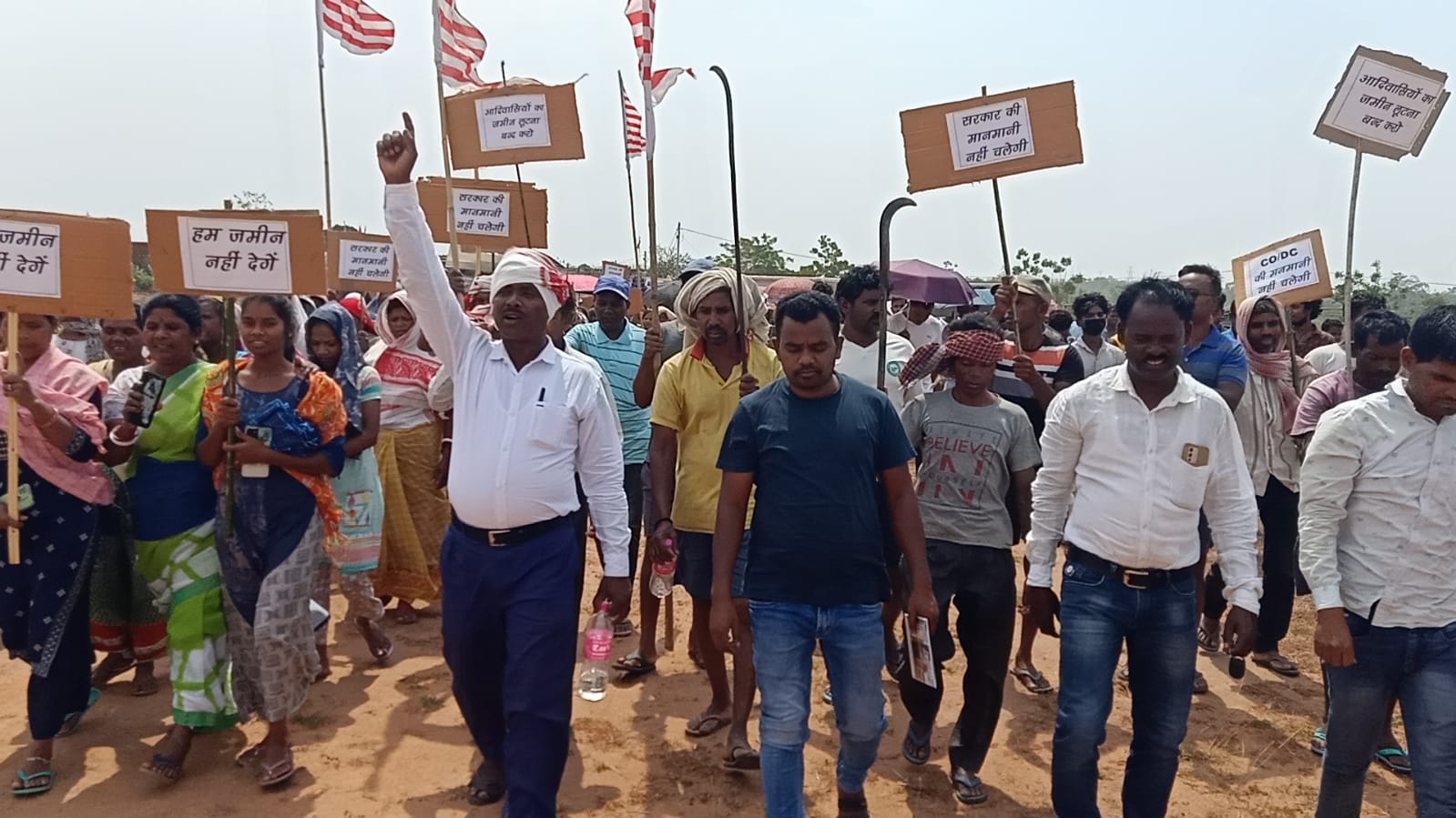 पुनर्वास के लिए जमीन लेने के विरोध में सरकार के खिलाफ प्रदर्शन-नारेबाजी