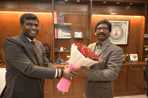 मुख्यमंत्री हेमन्त सोरेन से आज कांके रोड रांची स्थित मुख्यमंत्री आवासीय कार्यालय में उपायुक्त देवघर मंजूनाथ भजंत्री ने मुलाकात की। मुख्यमंत्री से यह उनकी शिष्टाचार भेंट थी। इस अवसर पर दोनों ने एक-दूसरे को नववर्ष की हार्दिक बधाई एवं शुभकामनाएं दीं।