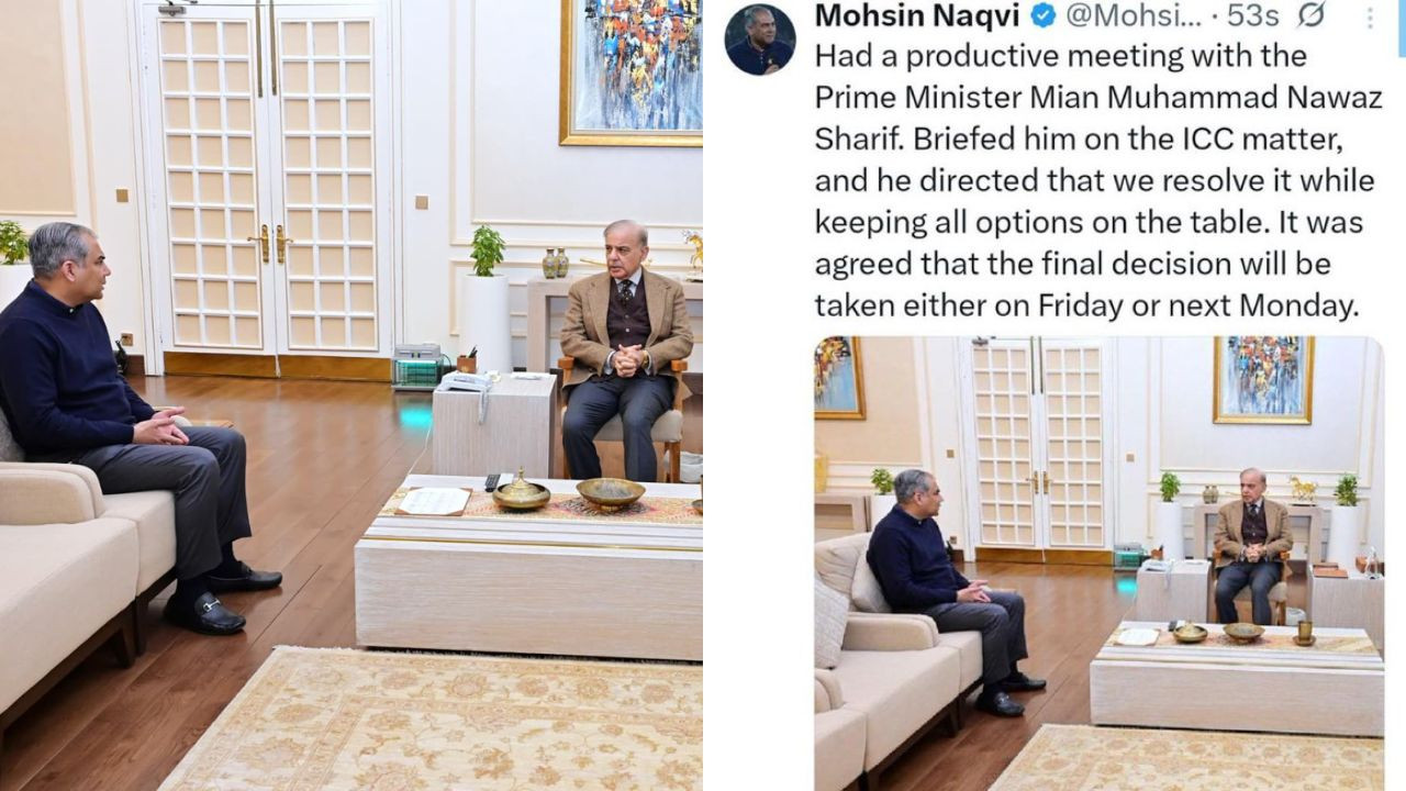 सोमवार को पीसीबी अध्यक्ष मोहसिन नकवी ने पाकिस्तान के प्रधानमंत्री शाहबाज शरीफ से मुलाकात की। इस बैठक में आईसीसी टूर्नामेंट में पाकिस्तान की भागीदारी पर महत्वपूर्ण चर्चाएँ की गईं। उम्मीद थी कि इस चर्चा के बाद हालात स्पष्ट होंगे, लेकिन नकवी ने सोशल मीडिया प्लेटफॉर्म X पर जानकारी दी कि अंतिम निर्णय शुक्रवार या अगले सोमवार को लिया जाएगा।