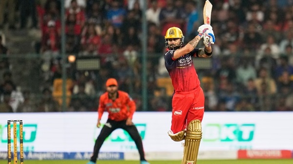 लक्ष्य की ओर बढ़ते हुए आरसीबी की शुरुआत बेहद मजबूत रही। विराट कोहली ने अपने अनुभव का पूर्ण उपयोग करते हुए पारी को मजबूती प्रदान की। कोहली ने 38 गेंदों में नाबाद 69 रन बनाए, जिसमें पांच छक्के और पांच चौके शामिल थे। यह उनके आईपीएल करियर का 64वां अर्धशतक था।