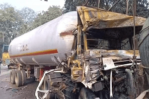 कोडरमा – घटना के संबंध में बताया जाता है कि टक्कर के बाद गैस टैंकर का ड्राइवर गाड़ी में ही फंस गया था. जिसके बाद टैंकर के केबिन में आग लग गयी और चालक जिंदा जल गया. घटना की सूचना पाकर फायर बिग्रेड की टीम घटनास्थल पर पहुंची और टैंकर में लगे आग पर काबू पाया गया. लेकिन तब तक ड्राइवर पूरी तरह से जल गया था. घटना के बाद सड़क के दोनों तरफ गाड़ियों की लंबी कतारें लग गयी थीं. माैके पर पुलिस पहुंचकर जाम हटवाया.
