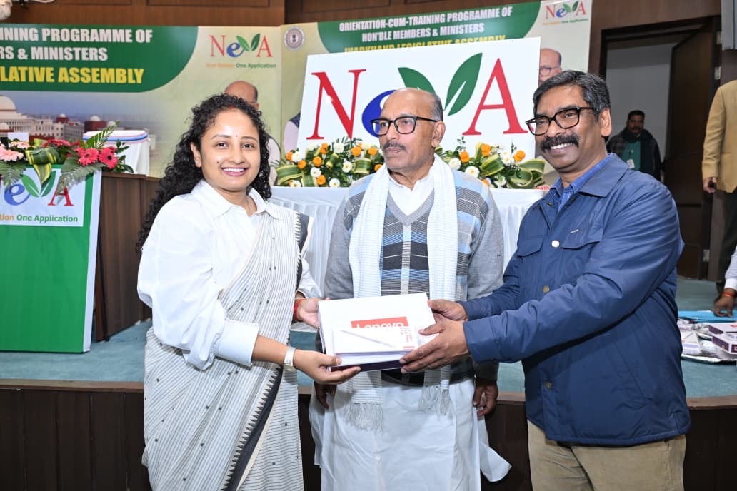 मुख्यमंत्री हेमन्त सोरेन आज झारखंड विधान सभा में आयोजित षष्ठ्म विधान सभा के पंचम (बजट) सत्र-2026 में राष्ट्रीय ई-विधान एप्लीकेशन (NeVA) परियोजना के तहत प्रशिक्षण एवं टैबलेट वितरण कार्यक्रम में सम्मिलित हुए। इस अवसर पर मुख्यमंत्री ने विधान सभा में एनईवीए (NeVa) सेवा केंद्र का विधिवत् उद्घाटन किया। मुख्यमंत्री श्री सोरेन ने अपने संबोधन में कहा कि झारखंड विधान सभा में NeVA सेवा केंद्र के रूप में एक नया अध्याय जुड़ रहा है। आज NeVA सेवा केंद्र का यहां विधिवत उद्घाटन हुआ है। राष्ट्रीय ई-विधान एप्लीकेशन के माध्यम से कई चीजें आसान होगी। इस एप्लीकेशन के माध्यम से विधान सभा के सदस्यगण विधायी कार्यों को सरलता और समयबद्ध तरीके से संपन्न कर सकेंगे। सदस्यों को अब विधान सभा सत्र के दौरान देर रात में यहां पहुंचकर प्रश्नों को डालने सहित अन्य कागजी प्रक्रियाओं के लिए आने की जरूरत नहीं पड़ेगी। साथ ही साथ विधान सभा कर्मियों को भी ड्यूटी में सहूलियत होगी।