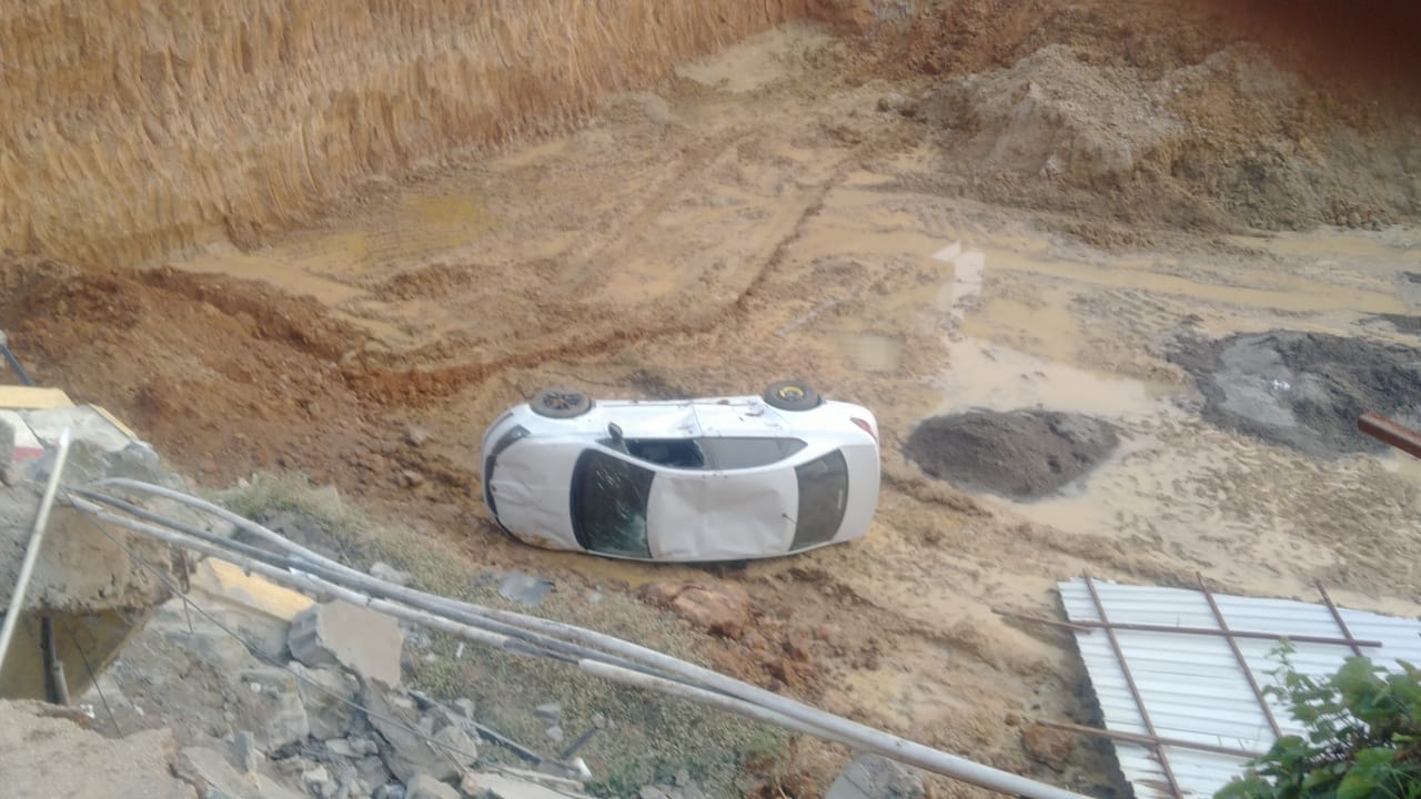 एंट्रेंस का दीवाल टूटा, 35 फीट गड्ढे में गिरी कार