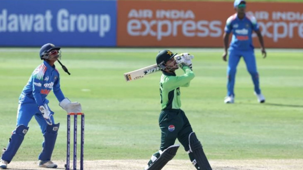 दीपेश देवेंद्रन ने भारत के लिए 36 रन बनाए, जिसमें उन्होंने 2 छक्के और 6 चौके लगाए। वैभव सूर्यवंशी ने 10 गेंदों पर 26 रन बनाते हुए 3 छक्के और 1 चौका जड़ा। लेकिन, भारतीय बल्लेबाज पाकिस्तानी गेंदबाजों का मुकाबला नहीं कर पाए और पूरी टीम 26.2 ओवर में 156 रन पर ढेर हो गई।