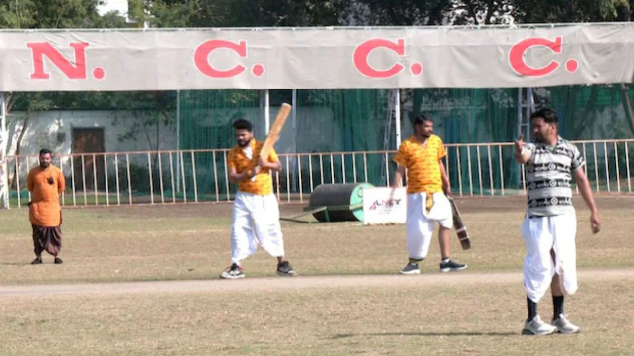 भोपाल: मध्य प्रदेश की राजधानी भोपाल के अंकुर खेल मैदान में इस समय क्रिकेट का एक अनोखा और सांस्कृतिक अनुभव देखने को मिल रहा है। खिलाड़ी पारंपरिक धोती-कुर्ता पहनकर मैदान में उतरते हैं। माथे पर तिलक और त्रिपुंड सजाए ये खिलाड़ी बल्लेबाजी और गेंदबाजी करते हुए ऐसा एहसास कराते हैं मानो खेल के साथ हमारी संस्कृति का उत्सव मनाया जा रहा हो।