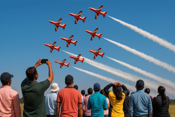 Air Show को देखने ग्राउंड पर लोगों की उत्साह से भरी मौजूदगी