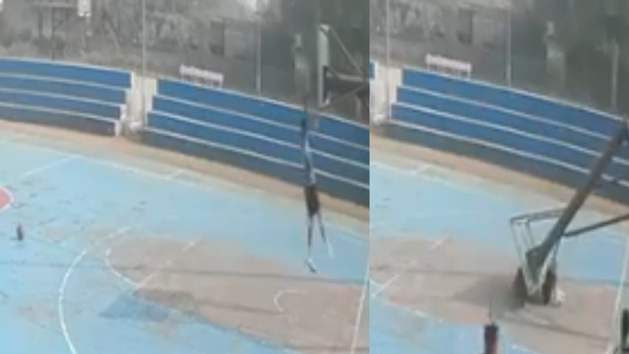 मैदान पर खेलते हुए खिलाड़ी की हुई दर्दनाक मौत, बास्केटबॉल पोल गिरने का CCTV आया सामने | basket ball player hardik rathi passes away pole falls while he playing