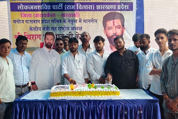 आदित्यपुर: लोक जनशक्ति पार्टी (राम विलास) के राष्ट्रीय अध्यक्ष और केंद्रीय मंत्री चिराग पासवान का 45वां जन्मदिन शुक्रवार को धूमधाम से मनाया गया। इस अवसर पर पार्टी कार्यकर्ताओं ने जयप्रकाश उद्यान में 45 पाउंड वजन का विशाल केक काटकर चिराग पासवान की लंबी उम्र और अच्छे स्वास्थ्य के लिए शुभकामनाएं दीं। कार्यक्रम की अध्यक्षता पार्टी के प्रदेश सचिव मनोज पासवान ने की। उन्होंने बताया कि चिराग पासवान गरीबों, दलितों, पिछड़ों और वंचितों के सशक्त प्रतिनिधि हैं।